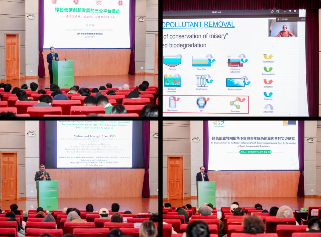 本届会议由中国循环经济协会、浙江省大学生科技竞赛委员会指导,由浙江科技大学、比利时根特大学和浙江省循环经济学会共同举办,得到中国国际科技促进会、杭州师范大学、《环境污染与防治》杂志社、浙江省绿色科技文化促进会等单位支持。北京大学金融与产业发展研究中心窦尔翔教授作题为《绿色低碳创新发展的三公平台模式——基于大系统、大逻辑、大模型的TRIF论》的报告,比利时根特大学工业和生态技术实验室主任Stijn Van Hulle教授作题为《Optimisation of Advanced Oxidation/Reduction Processes in View of Micro-Pollutant Removal from (Waste)Water with Different (Natural)Organic Matter Content》的报告,孟加拉农业大学农业经济与农村社会学学院Mohammad Jahangir Alam教授作题为《The Role of Land System as an Institutional Arrangment in Rural Transformation: Evidence from Bangladesh》的报告,浙江科技大学碳中和创新研究中心主任李俊研究员作题为《绿色创业导向视角下影响青年绿色创业因素的实证研究》的报告。17名青年学者聚焦绿色低碳创新发展前沿议题作交流发言,碰撞思维火花,凝聚创新共识,分享实践经验。